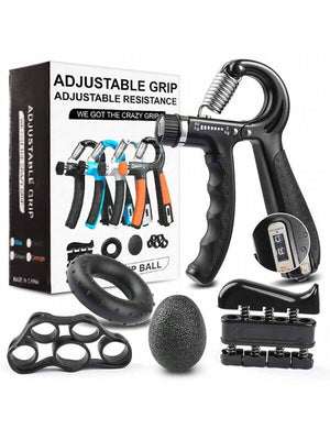 This complete set includes an adjustable hand gripper with a built-in counter to track your progress, a finger exerciser and stretcher to improve finger strength and flexibility, a resistance grip ring, and a stress relief ball for tension release and hand relaxation. Everything comes packed in a compact carry bag, making it perfect for gym sessions, home workouts, office use, or travel.